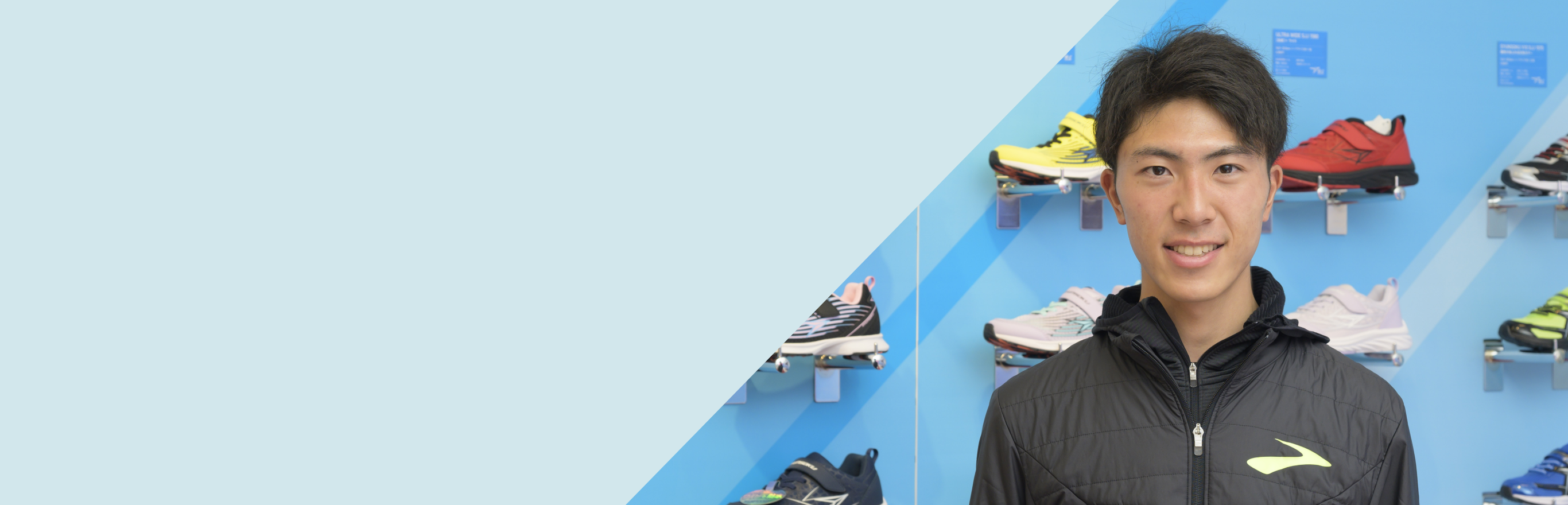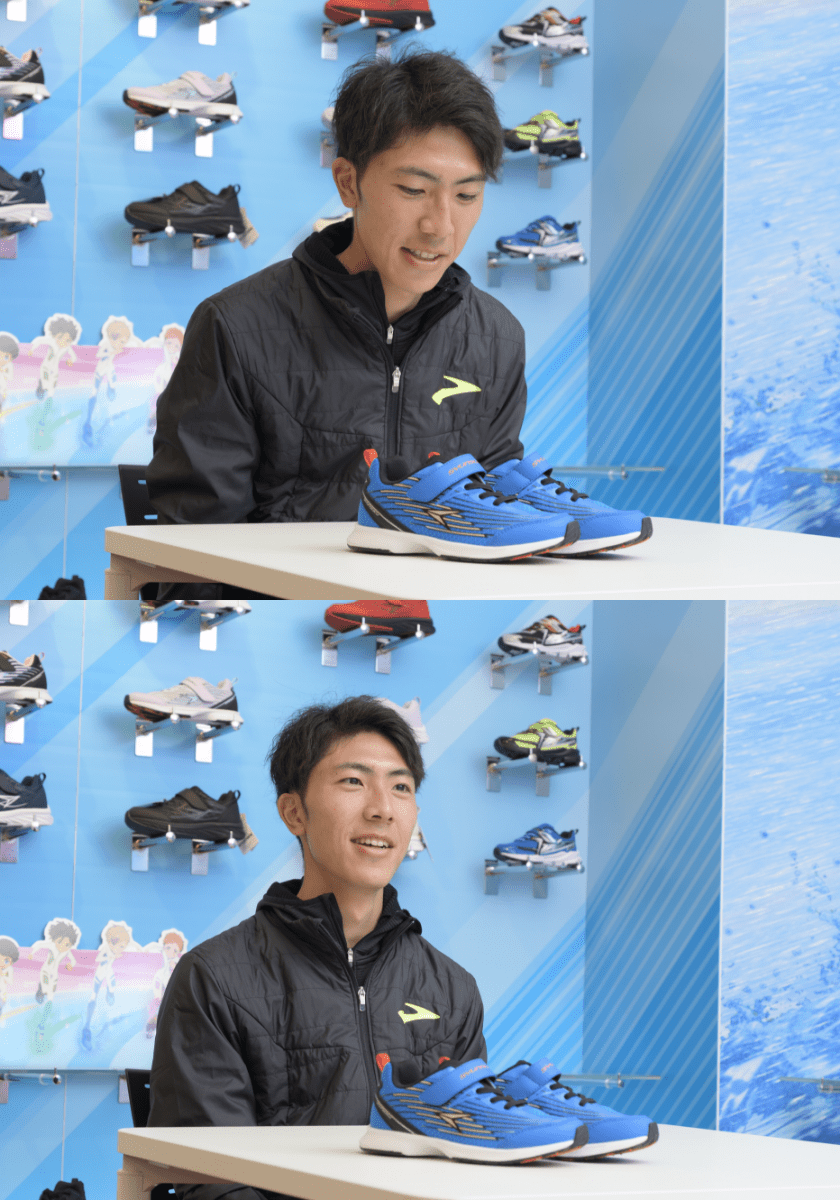 正是現在這一瞬間呢。因為穿著「瞬足」,沒想到會變成這樣,當我拿起「BROOKS」穿上時,並不知道是由阿基里斯販售的。現在這樣相連,感受到奇妙的緣分。